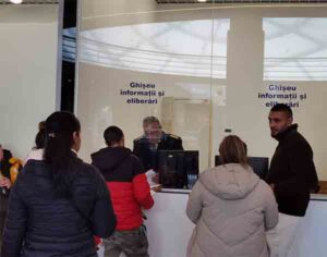 Serviciul Public Comunitar de Pașapoarte poate funcționa cu un număr de 4 ghișee, iar suprafața totală a spațiului ocupat este de 470 m2. Pentru facilitarea plății taxelor de pașaport, în centrul comerial au fost amplasate două stații de plată tip „selfpay”. Programul de lucru cu publicul este de luni până vineri între orele 08:30-16:30, în zilele de joi fiind prelungit până la ora 18:30.