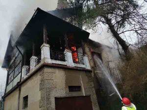 „Pompieri militari ai Detașamentului Arad au intervenit în această dimineață cu două autospeciale de lucru cu apă și spumă și un echipaj SMURD, cu sprijinul SVSU Ghioroc și SVSU Covăsânț pentru lichidarea unui incendiu izbucnit la o casă din localitatea Ghioroc. La sosirea echipajelor de intervenție incendiul se manifesta generalizat cu flacără și degajări de fum, în interiorul casei, propagat la nivelul podului pe o suprafață de aproximativ 100 mp, cu posibilitate de extindere la întreaga locuință. Intervenția promptă a echipajelor a făcut ca incendiul să fie localizat și lichidat în limitele găsite, salvând astfel casa. În urma flăcărilor au ars două încăperi și bunurile aflate în interior, pe o suprafață de aproximativ 100 mp. Din fericire nu s-au înregistrat victime iar cauza probabilă de producere a incendiului a fost stabilită ca fiind “jar/scântei”, provenite de la coșul de evacuare a fumului neizolat corespunzător față de materialele combustibile”, a declarat Ruxandra Klein de la ISU Arad.