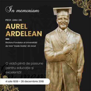 În fiecare an, la 26 decembrie, ne amintim de Rectorul fondator al Universității de „Vest Vasile” Goldiș din Arad, care ne-a părăsit acum 5 ani, în a doua zi de Crăciun. Dl. Prof. Univ. Dr. Aurel Ardelean va rămâne, pentru totdeauna, în amintirea tuturor celor care l-au cunoscut, dar mai ales în inimile persoanelor celor mai apropiate: familia.