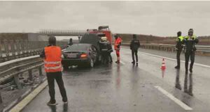 Pe autostradă, în urma accidentului se circulă pe banda de urgență.